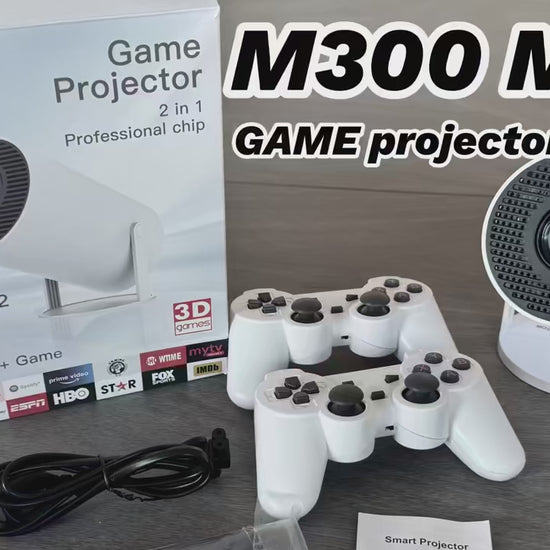 • Incluye: 1× Proyector M300, 2× Controladores inalámbricos, 1× TF Card (64GB), 1× Receptor 2.4G, 1× Cable de alimentación, 1× Control remoto, 1× Manual de usuario